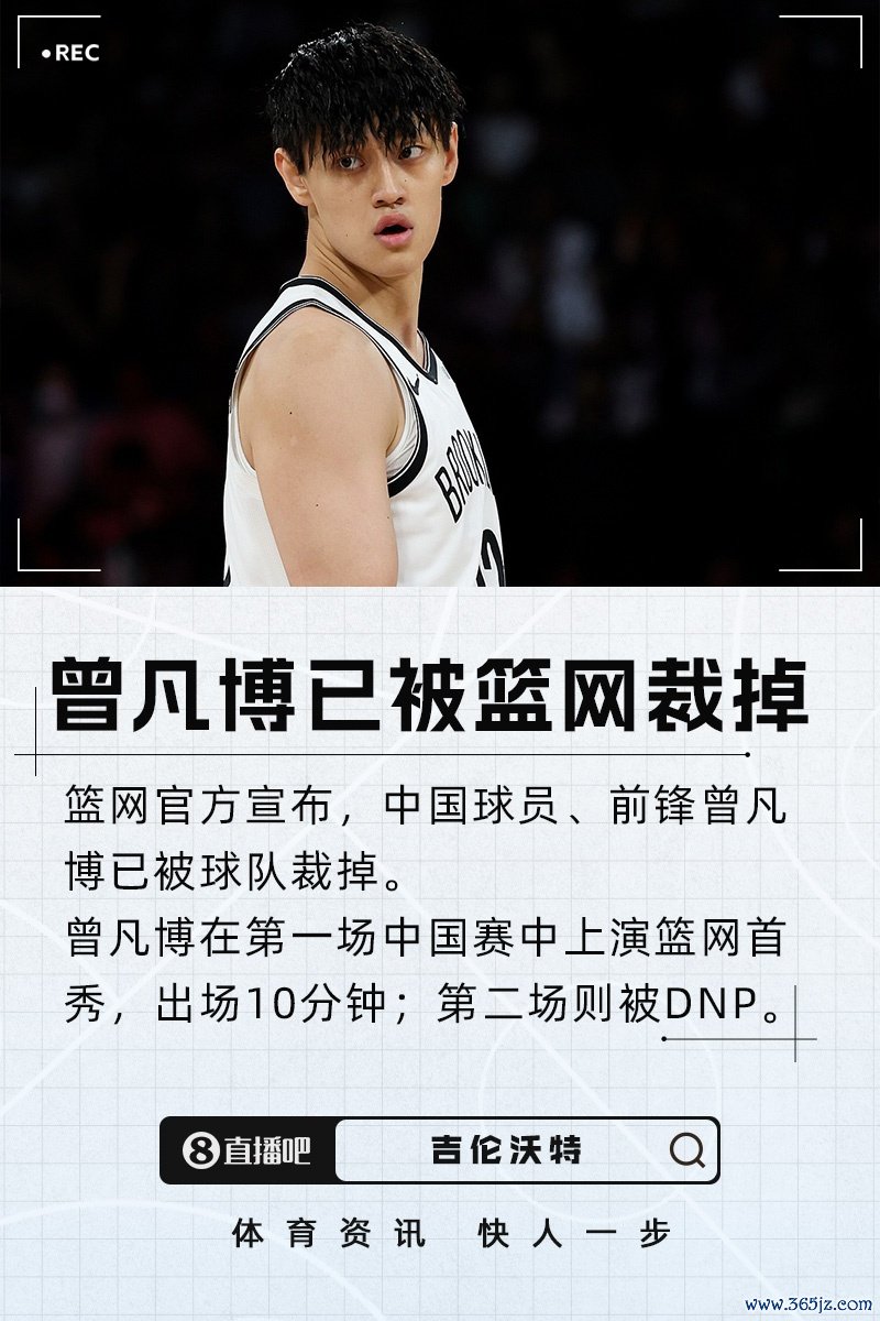 官方:中国球员曾凡博被篮网裁掉💥两场中国赛只打10分钟零出手