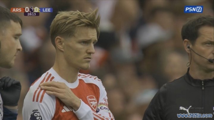 厄德高被利兹联球员放倒右肩疑似负伤 ,队医检查后仍能坚守 赛事