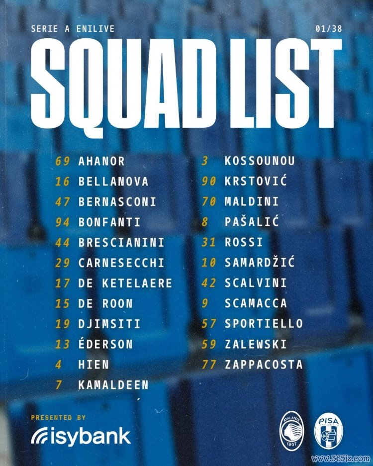 亚特兰大首轮大名单:德凯特拉雷、扎莱夫斯基在列,卢克曼缺席