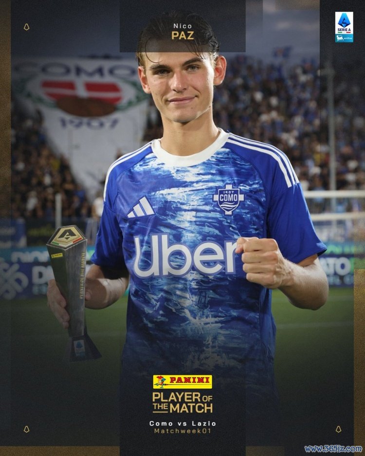 传射建功!20岁帕斯当选科莫2-0拉齐奥全场最佳球员