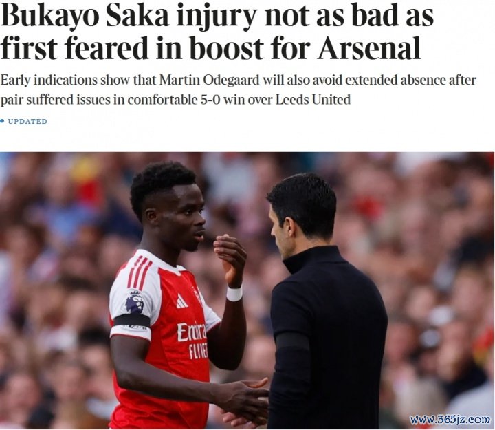 枪手利好!泰晤士:萨卡&厄德高伤情不严重,是否缺战利物浦未定