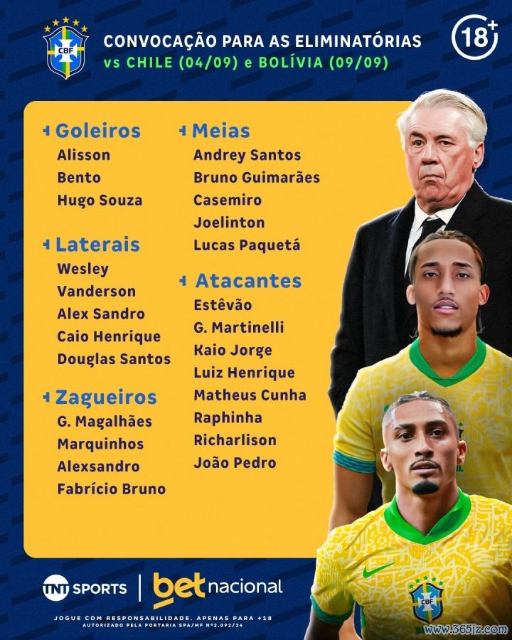 拉菲尼亚、佩德罗、理查利森在列,卡塞米罗、马丁内利、吉马良斯等人悉数入选, 羽毛球资讯直播吧内马尔因伤落选, 多特蒙德维尼修斯、米利唐和罗德里戈也均未入选。