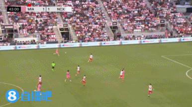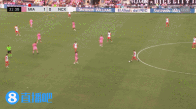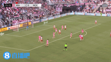 上半场补时5分钟,第46分钟,迈阿密国际中场球员任意球机会,布斯克茨直接吊门被守门员飞身扑出端线 。↓