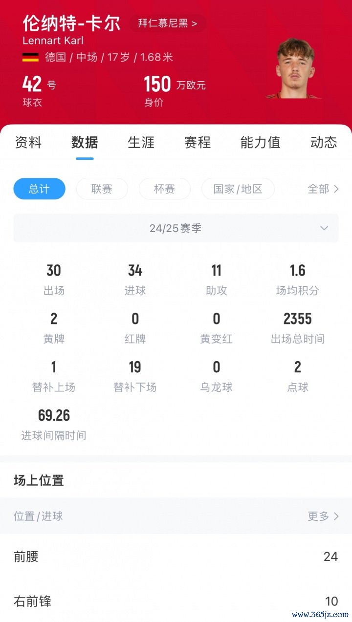 未来高度如何?拜仁17岁小将卡尔3场赛前热身 赛2球1助,现身价150万欧