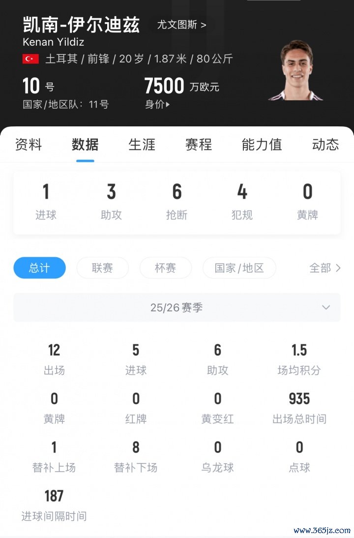 伊尔迪兹现年20岁,司职前场球员,他本赛季为尤文出场12次,贡献5球6助,他与尤文的合同将在2029年到期,现德回转 价7500万欧。