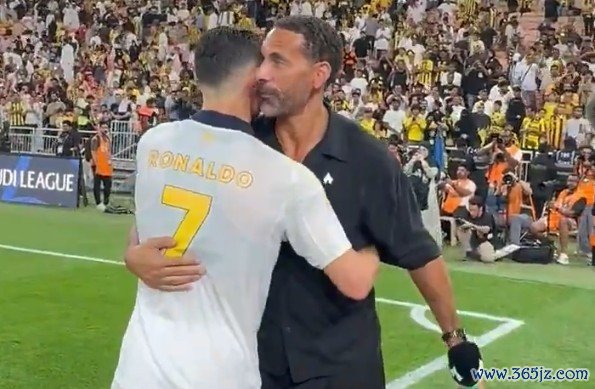 老友相见! C罗拥抱前来观战的费迪南德, 两人亲切交流