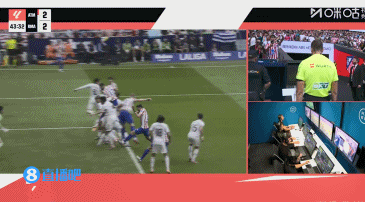 阿尔贝罗拉回应:“往后退一点,给我看接触瞬间(并提供了该时刻的画面)。接触点就在那里。好的,完美,我们取消这个进球。他明显用手触球,所以我们取消这个进球。”