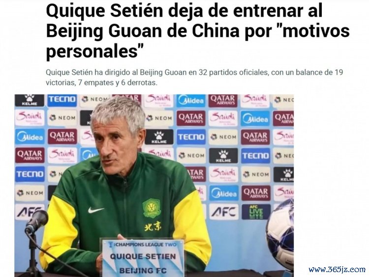 10月6日讯 日前,西班牙媒体《马卡报》、《世界体育报》报道了北京国安主帅塞蒂恩因“个人及家庭原因”辞职的消息。